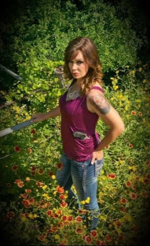 Custom VNeck, SMALL Stretch, Lace Overlay, Slimming, Right Hand Cross Draw Holster (not for quick draw) Bust 32-36", Waist 28'30", Hips 34-36" (Handgun not included)