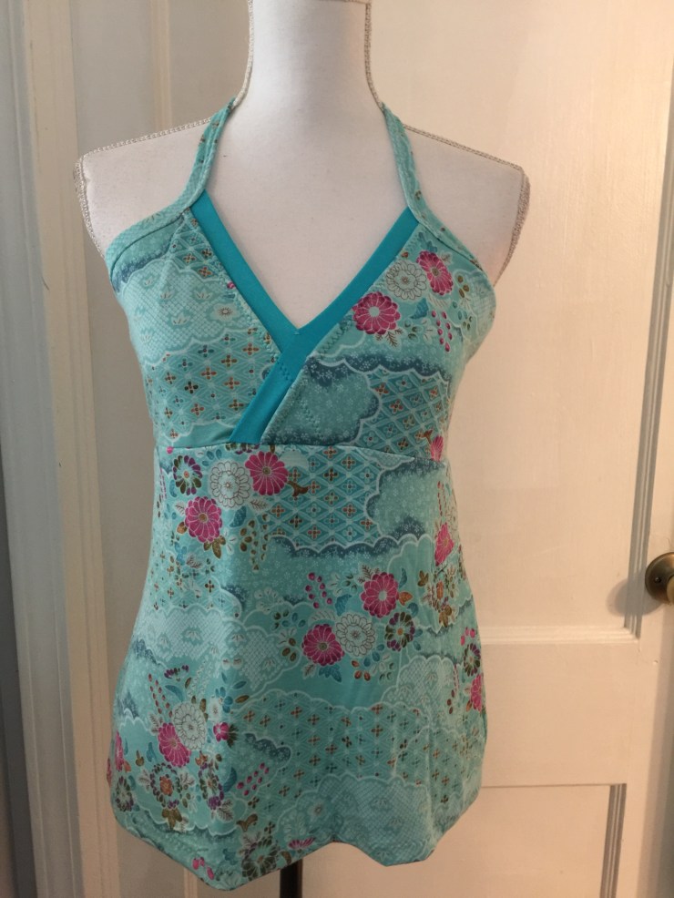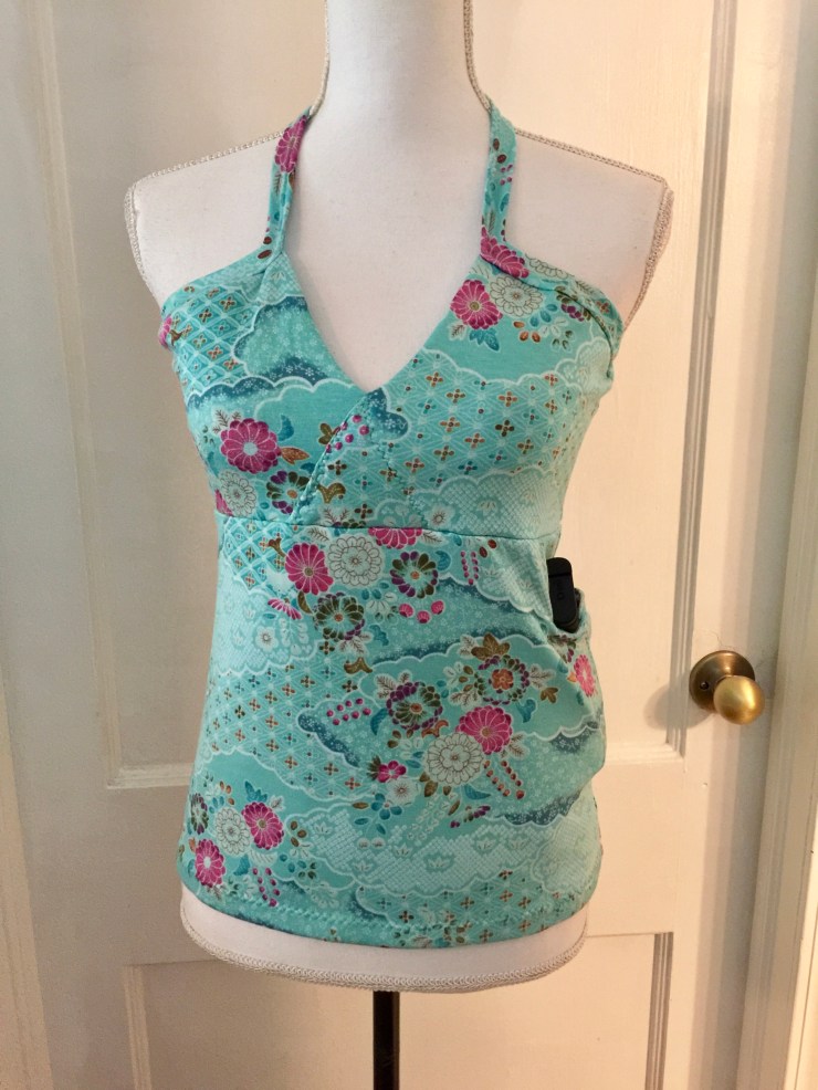Holster Carry Top, halter with tie, Womens SMALL, V-Neck, Teal / Turquoise floral print