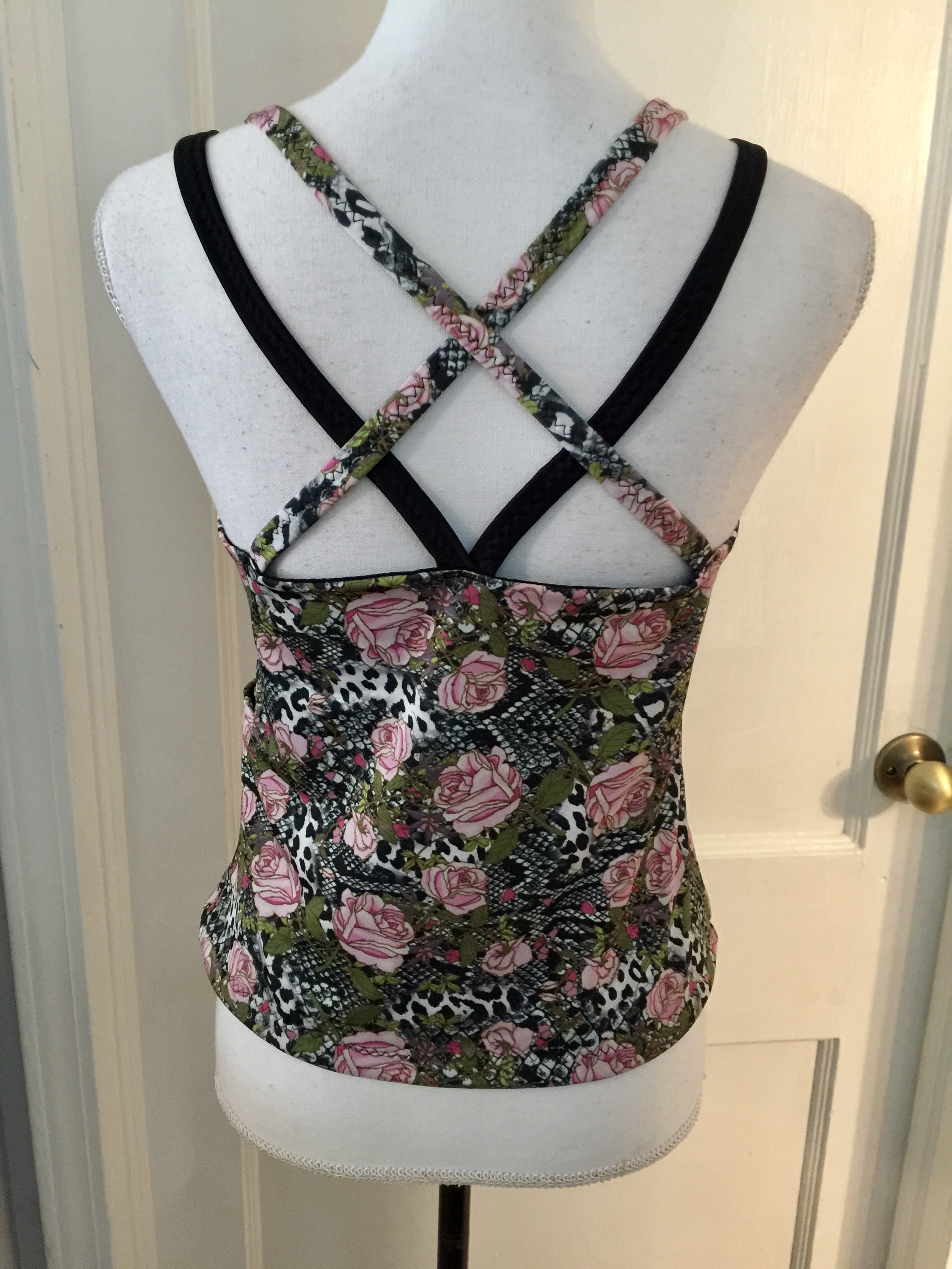 Custom VNeck MEDIUM holster top, strappy back detail, stretch, pink roses, snakeskin print. Right Hand Cross Draw Holster. (Not for quick draw) Bust 36-38", Waist 32-34", Hips 36-38" (Handgun not included)
