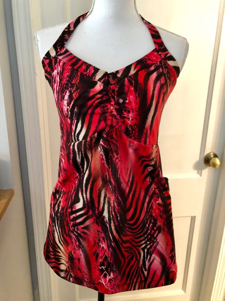 Custom halter holster top. Womens LARGE. Stretch, red, fire / snakeskin print, slimming. Right Hand Cross Draw Holster (not for quick draw). Holds small-medium handgun. LARGE measurements: Bust 40-42", Waist 35-37", Hips 38-44" (Handgun not included) Hand wash cold. Hang dry. Made in USA.