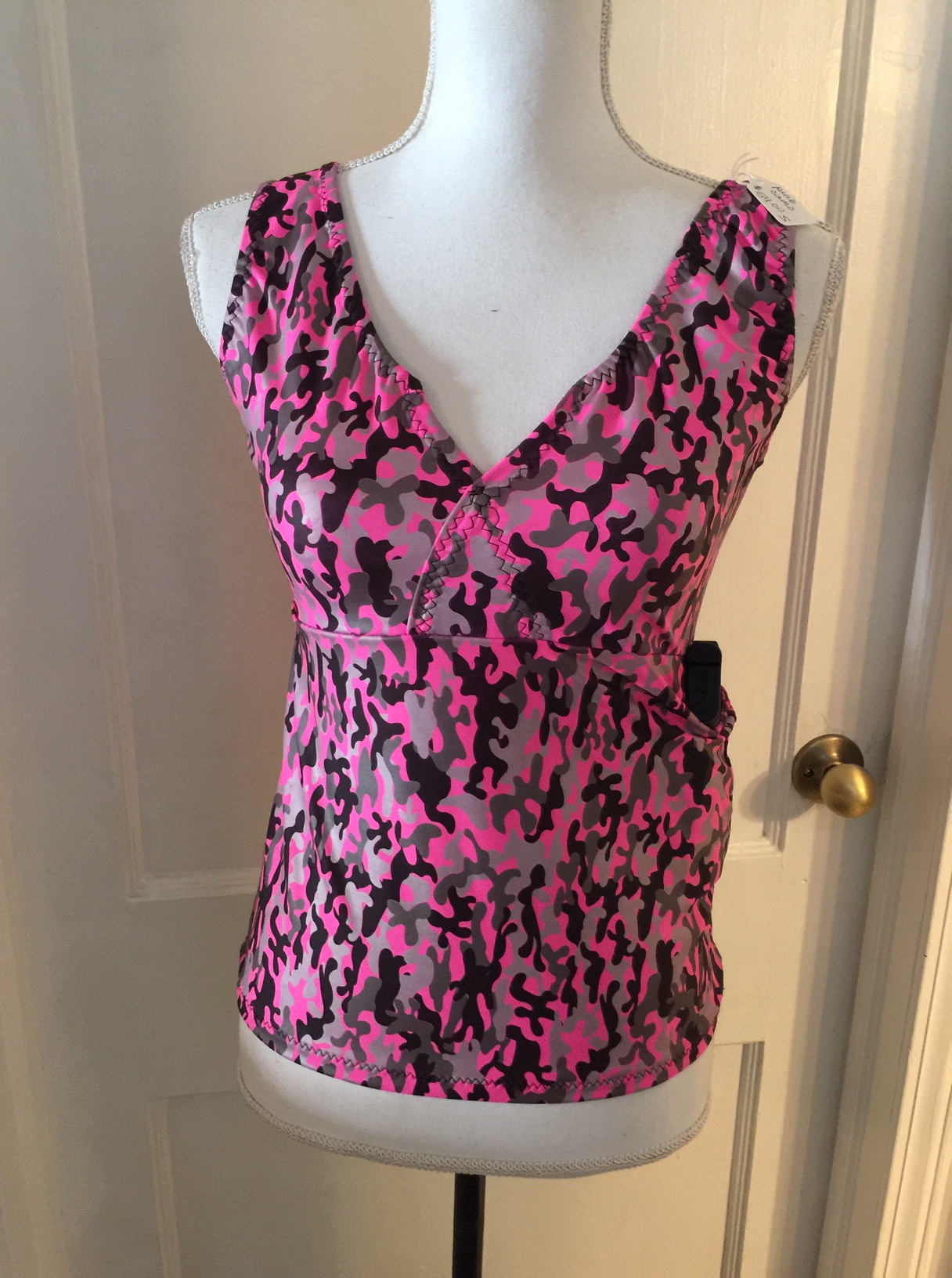 Holster Carry Top, sleeveless tank, Womens SMALL, Pink Camo Print